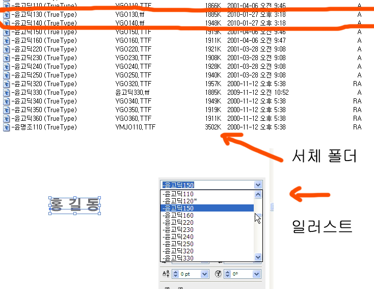 안녕하세요? 일러스트에서요.. 분명 서체 폴더에는 윤고딕 130, 140이 있는데 일러에서 보면 안보이는데 왜그렇죠? 분명 타입도 같고 다른 윤고딕은 다 열리는데 왜 두개만 안보이는 걸까요?
