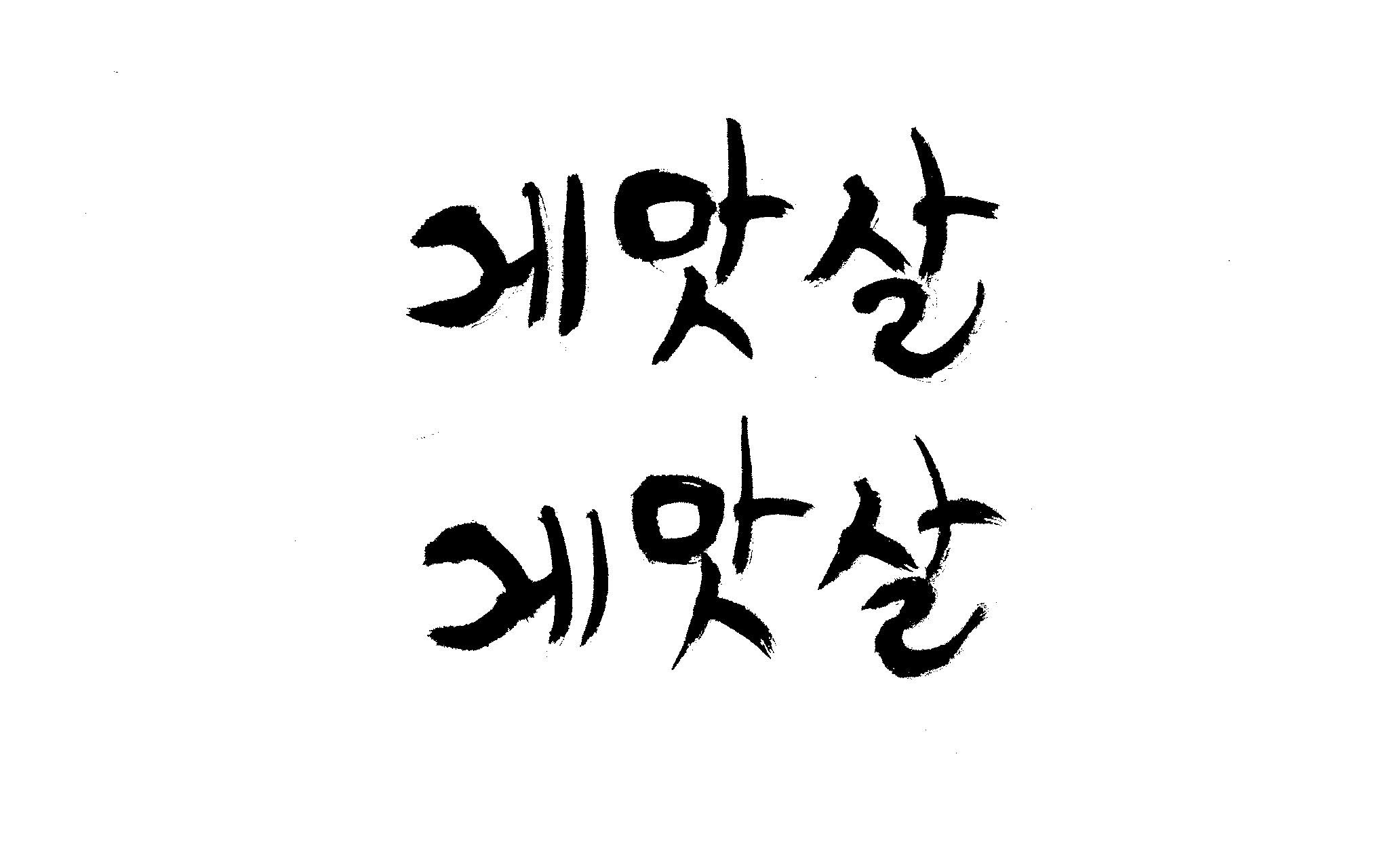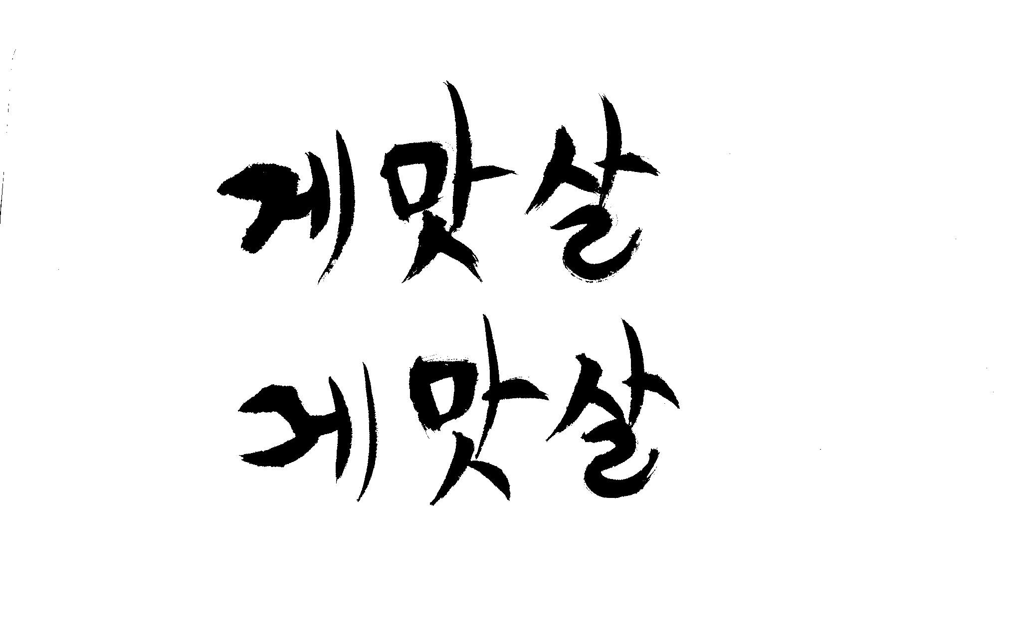 캘리 부탁드립니다. 김철호 일반 0 6406 2009.01.30 09:49 > > 제가 이리저리 써보기도 했으나 너무 이상해서 도움을 받고자 합니다. > 단어는 '게맛살' 입니다. 패키지디자인에 사용할 타이틀입니다. > 급한사항이니 부탁드립니다. 감사합니다. ^^ >