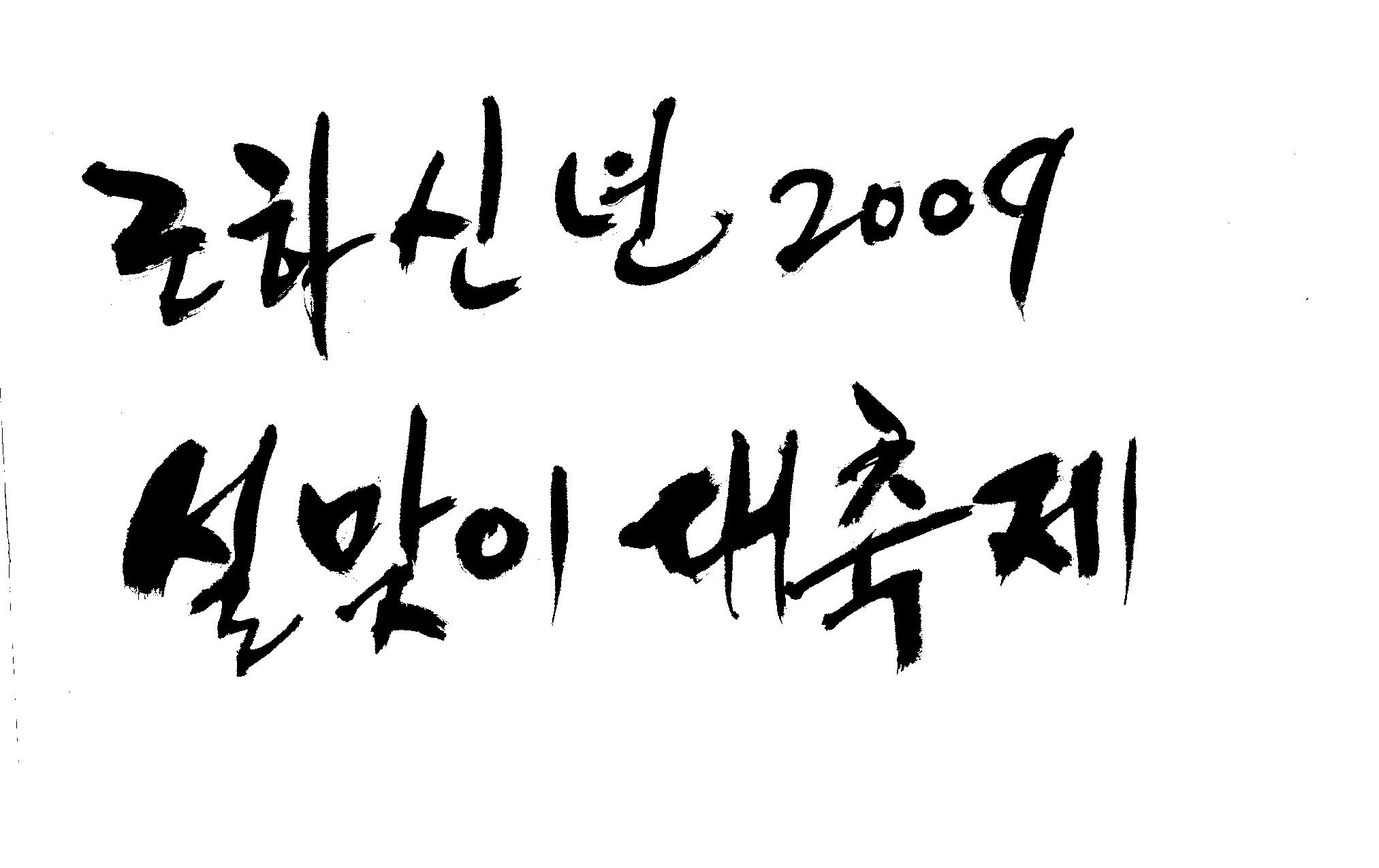 근하신년 2009 설맞이대축제 캘리 부탁드려요. 김철호 일반 3 16399 2009.01.14 10:45 > > A3 전단지 타이틀로 쓰려고 하는데요. > > ''근하신년 2009 설맞이대축제'' 캘리 부탁드립니다. > > 많은도움이 되주셔서 감사합니다. > > 유용하게 쓰세요..