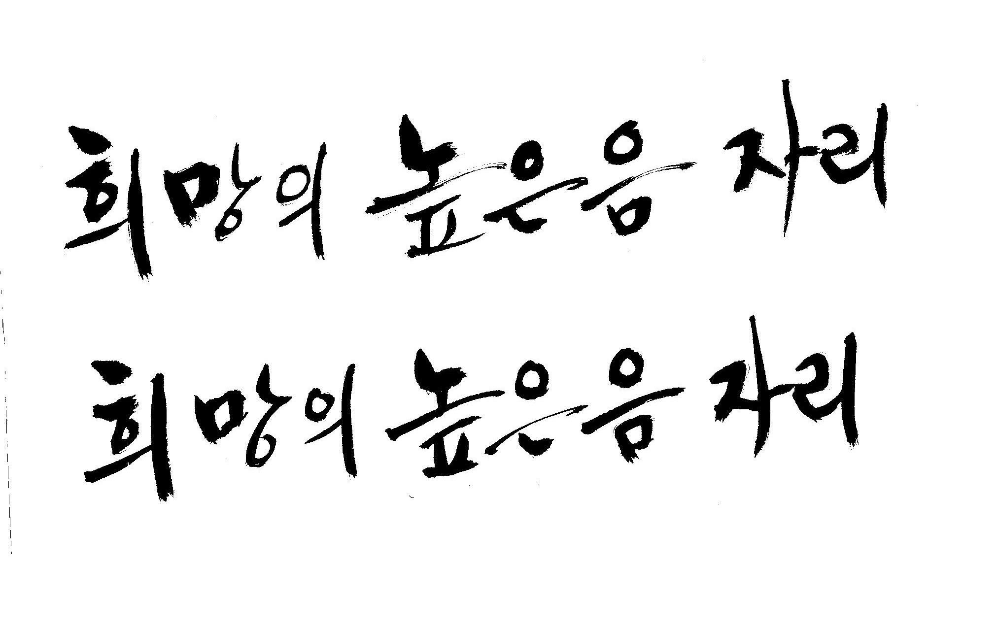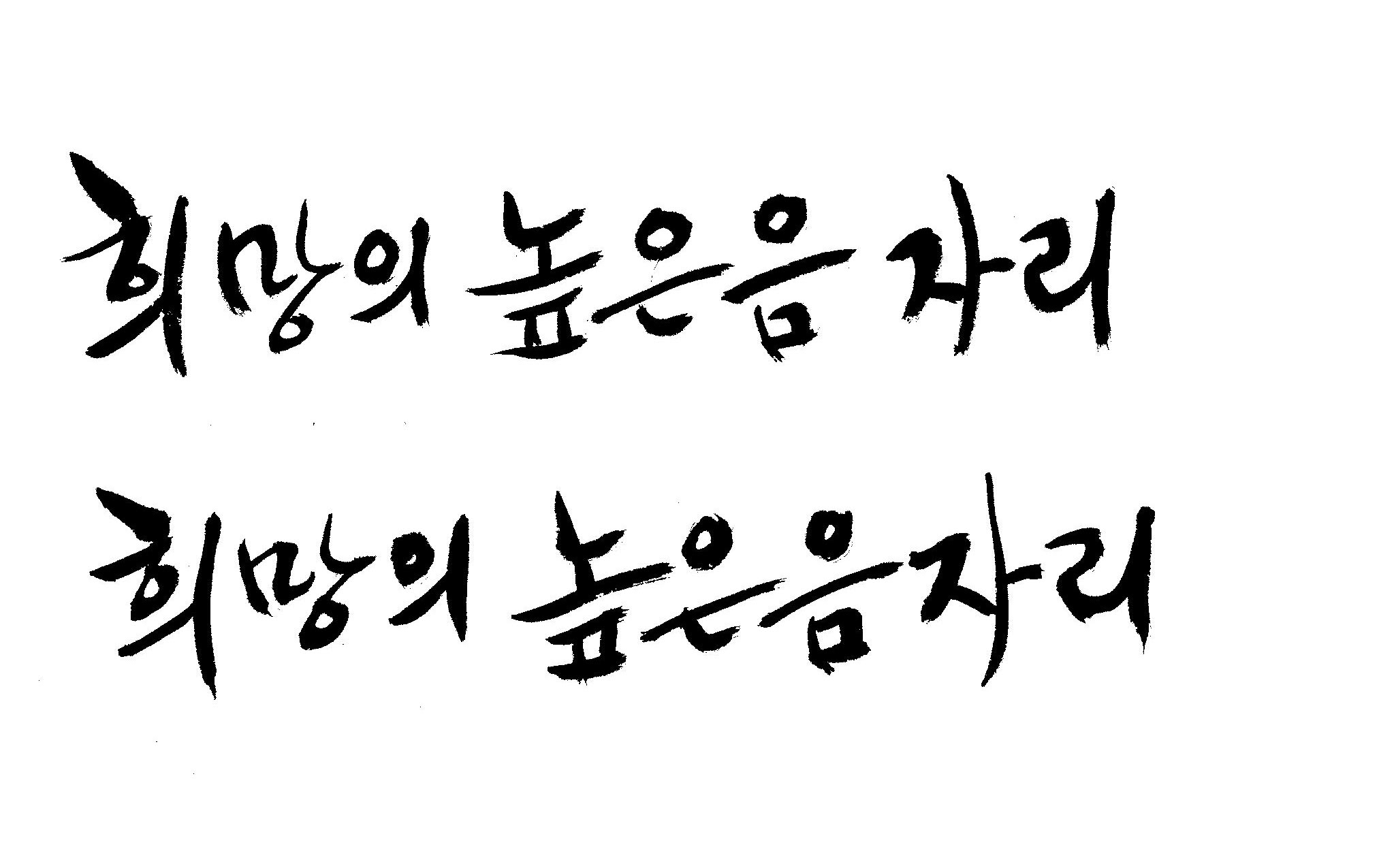 저도 캘리좀부탁이요 ^^;; 김철호 일반 0 6044 2009.01.14 10:59 > > 희망의 높은음자리 > > 감사합니다 ^^ 꼭부탁드려욧 ㅎㅎㅎ > 좋은 글이라서 신경썼는데 만족할 만큼 않나왔네요.. 유용하게 쓰시길...