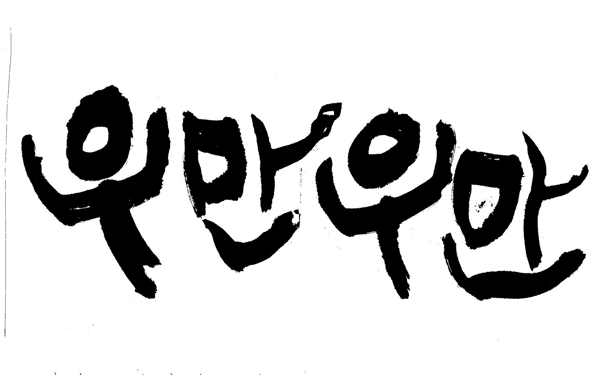 > 우만이 뭔지 짐작은 가지만 정확한지는 알 수 없는 의미입니다. 소고기만 파는 정육점 상호인지...아프리카의 오지마을 이름인지...알 수 없는 글을 올려 놓고 캘리를 부탁하면 차라리 인쇄글꼴 하나 찾아서 쓰는게 났습니다..반드시 다음에 누군가에게 캘리를 부탁할 일이 있거든 그 의미를 밝혀야합니다.. 캘리를 하는데 반드시 필요한 요소이거든요.."칼"이라는 캘리를 한다고 했을때 상처내고 죽이고 하는 살벌한 느낌을 갖게 해야할 지, 요리하는 칼로서 맛나고 배부르게 하는따뜻한 칼인지를 알아야하는 이유와 같습니다..