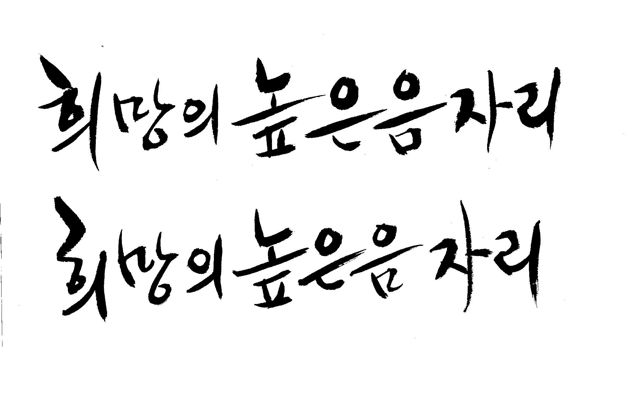 저도 캘리좀부탁이요 ^^;; 김철호 일반 0 6355 2009.01.14 10:59 > > > > > 희망의 높은음자리 > > > > 감사합니다 ^^ 꼭부탁드려욧 ㅎㅎㅎ > > > > 좋은 글이라서 신경썼는데 > 만족할 만큼 않나왔네요.. > 유용하게 쓰시길... >